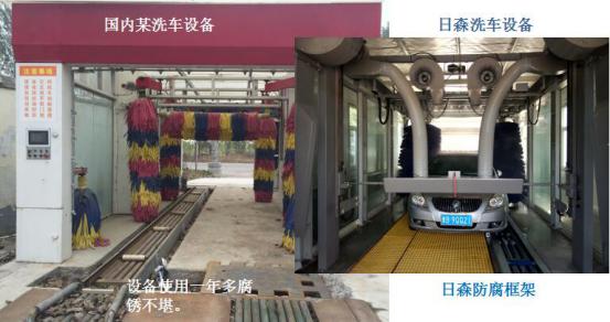 ????整體框架的防腐。洗車設(shè)備長(zhǎng)時(shí)間接觸有水環(huán)境,濕度高,如果整體機(jī)構(gòu)沒(méi)有做好防腐處理,一到兩年時(shí)間設(shè)備便會(huì)銹跡斑斑,腐蝕不堪之狀。