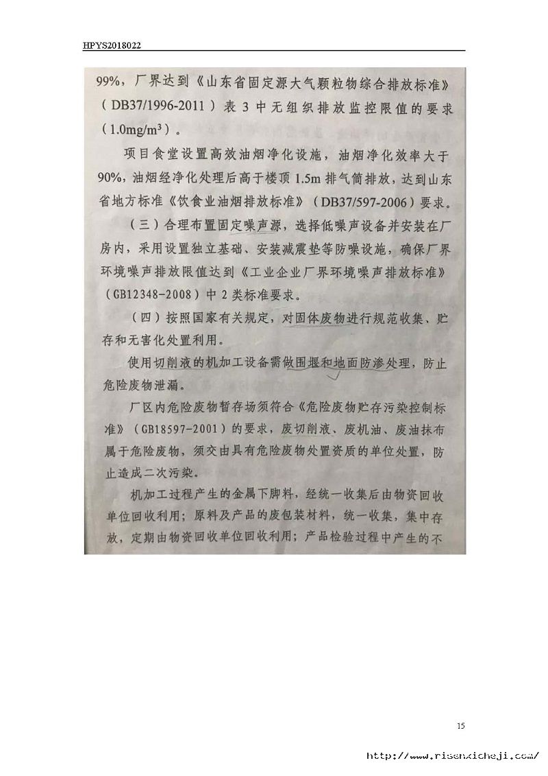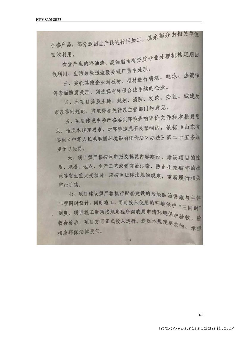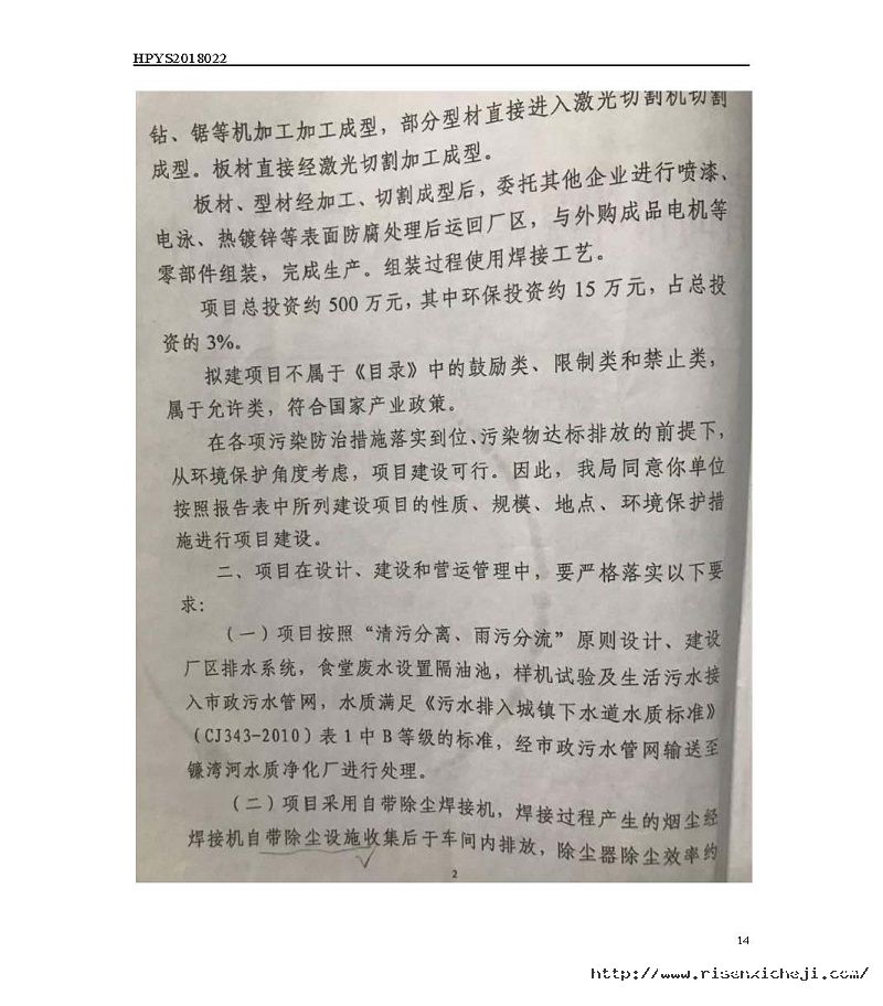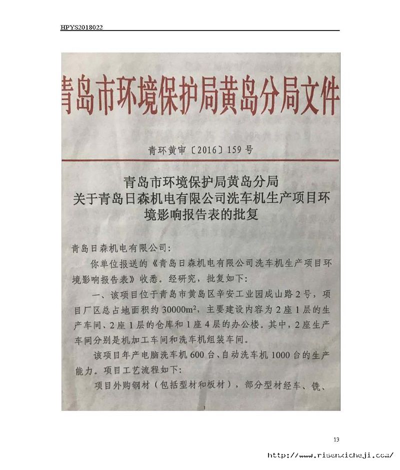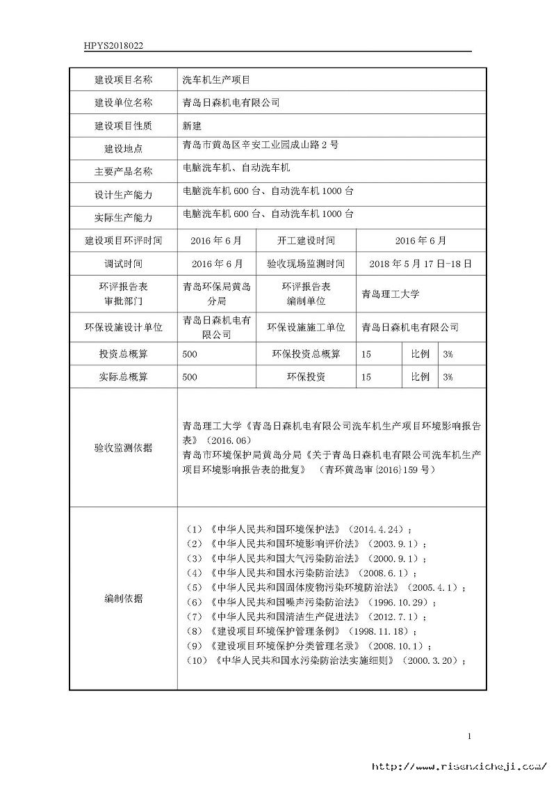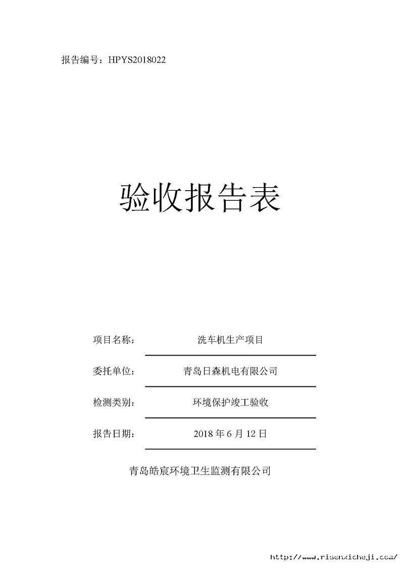 青島日森機電有限公司洗車機生產(chǎn)項目竣工環(huán)境保護驗收意見